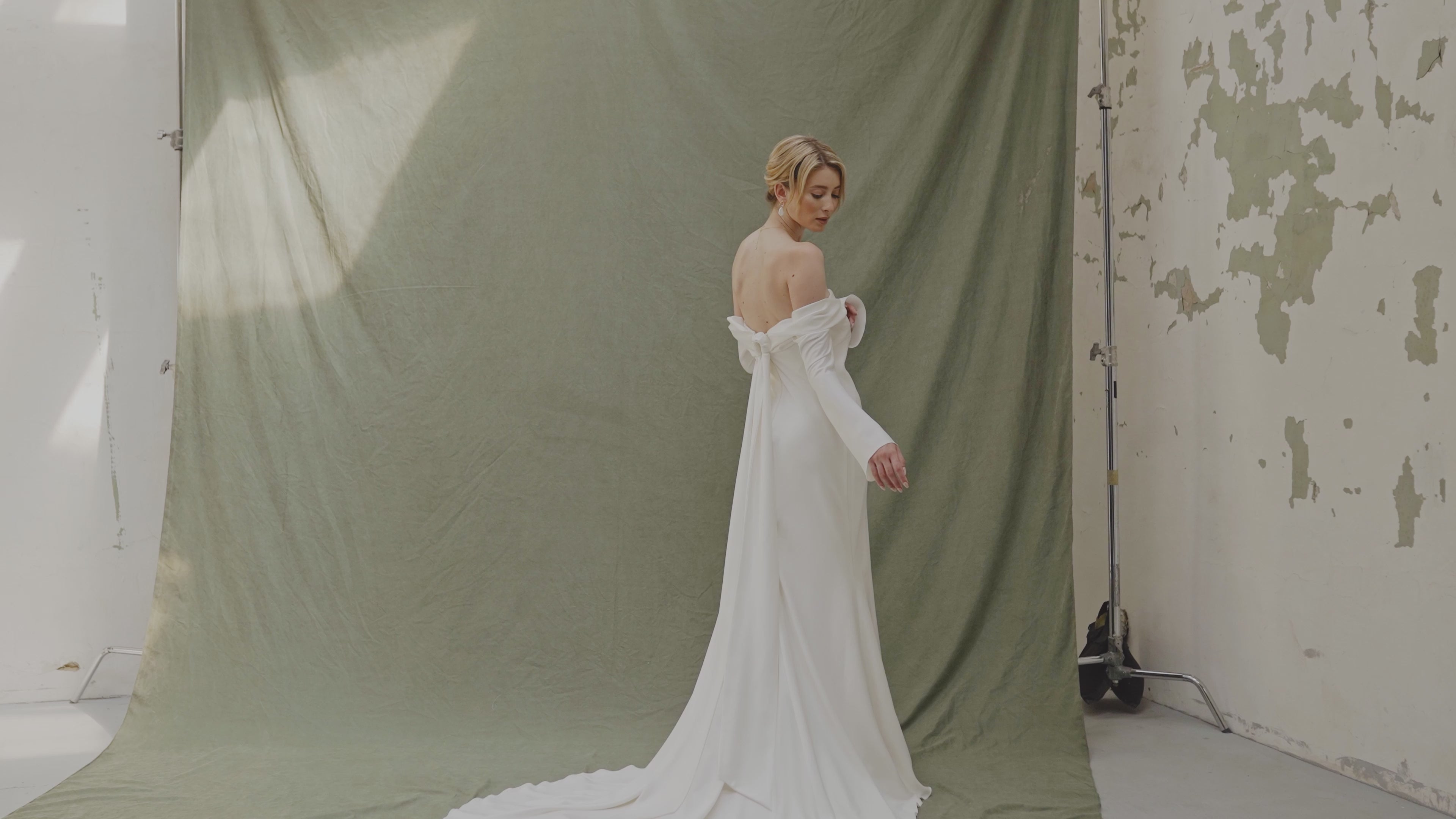 Wedding dress with off-the-shoulder long sleeves - Neroli